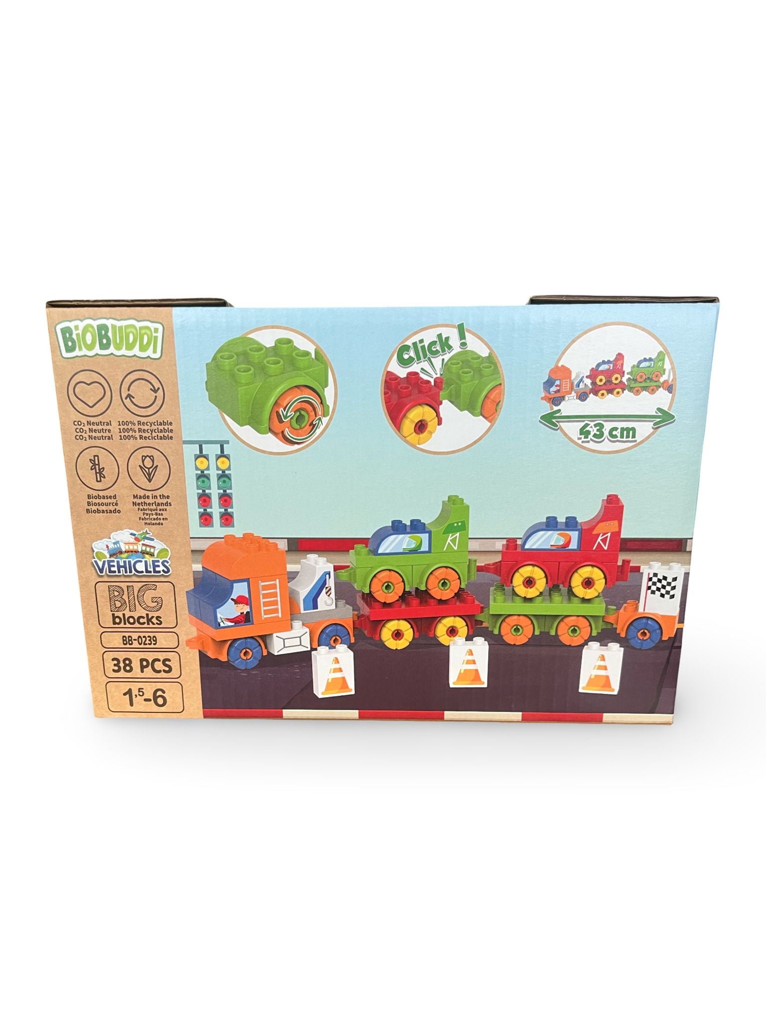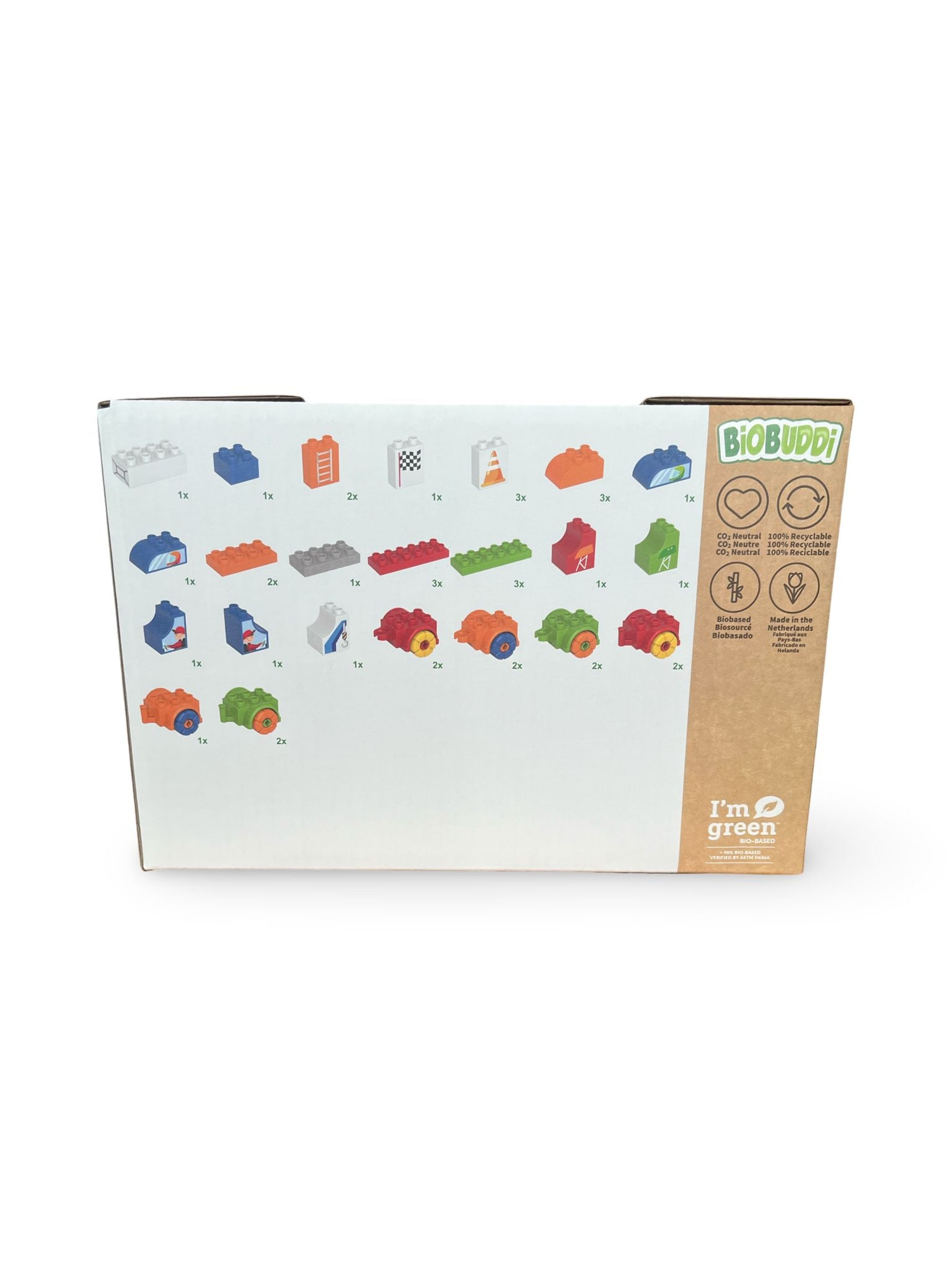 Baue das Schloss, platziere die Dominosteine, bereite alles vor und los! Wow endloser Bau- und Spielspaß. Was für eine Herausforderung! BiOBUDDi hat drei einzigartige Domino-Sets für Kinder ab 6 Jahren entwickelt. Dieses Set ist das „Domino Castle"-Set. Kinder bauen zuerst eine große Burg aus Karton, dann beginnen sie mit dem Platzieren der Dominosteine. Letztendlich bauen sie eine einzigartige Strecke mit allerlei coolen Herausforderungen, die in das Schloss integriert wurden. Es ist wahnsinnig cool, seine eigene Dominoburgbahn zu bauen. Kinder können einige der Dominosteine auch mit coolen Aufklebern bekleben. Wie wird es hergestellt? Das ist noch nicht alles! Die Dominosteine werden nachhaltig aus einem Nebenstrom der Zuckerrohrverarbeitung hergestellt. Das Schloss besteht aus Karton. Das komplette Produkt wird CO2-neutral in den Niederlanden produziert. Wie erstaunlich ist das? Was ist im Spielset? • 150 Dominosteine • 17 Aufkleber • 53 Kartonteile für das Schloss. • 1 Handbuch