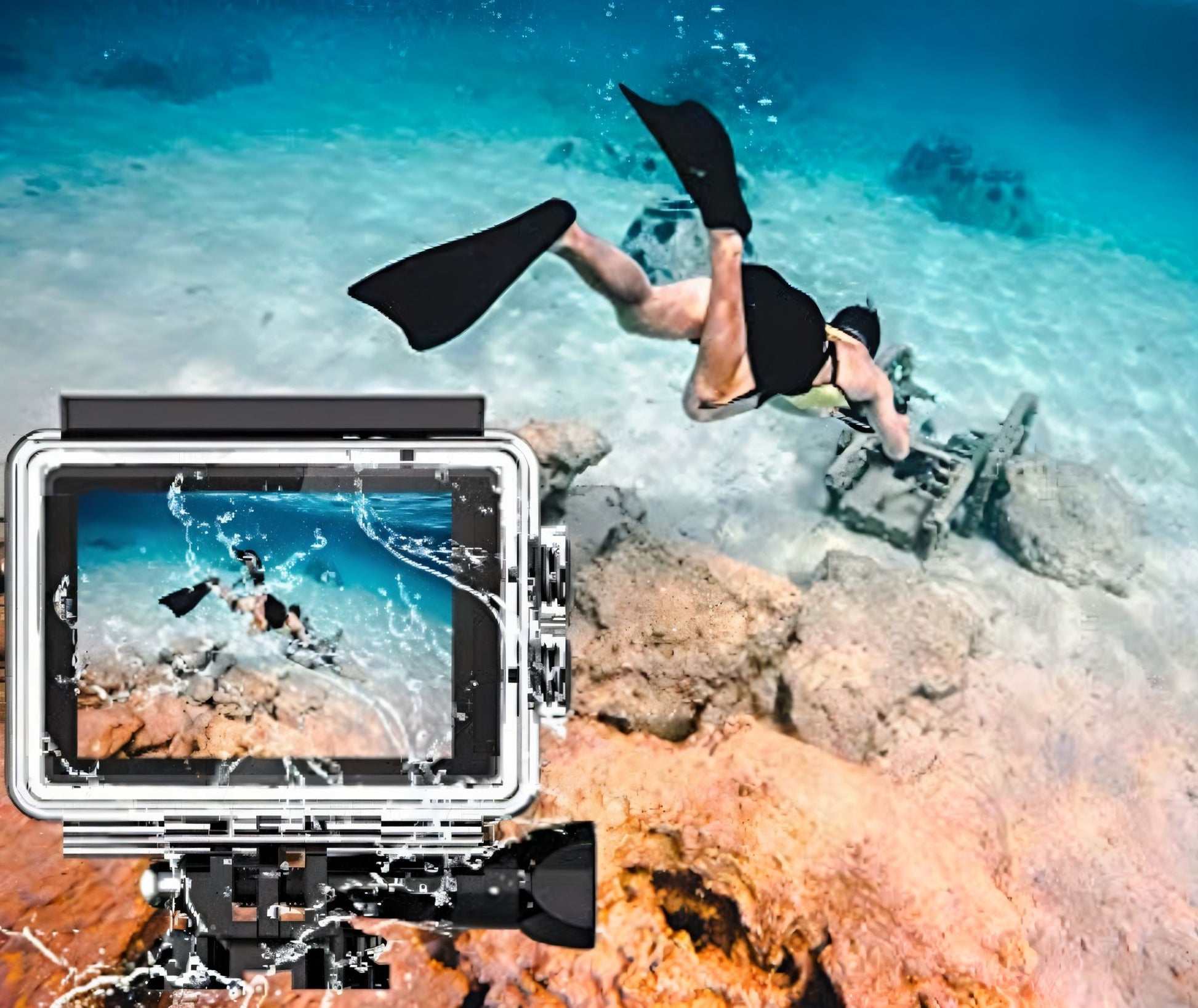 Die Gookam Action Cam bietet mehrere Optionen für die Videoauflösung: 4K/30FPS, 2.7K/30FPS, 1080P/60FPS, 1080P/30FPS, 720P/120FPS und hochauflösende 20MP-Fotos. Mit einem IP68 wasserdichten Gehäuse ermöglicht sie es Ihnen, die wunderschöne Unterwasserwelt in Tiefen von bis zu 40 Metern aufzunehmen, was sie zu einer idealen Action-Kamera für Wassersportarten wie Schwimmen, Tauchen, Rafting und Surfen macht. Der Effekt wird Ihre Erwartungen übertreffen.