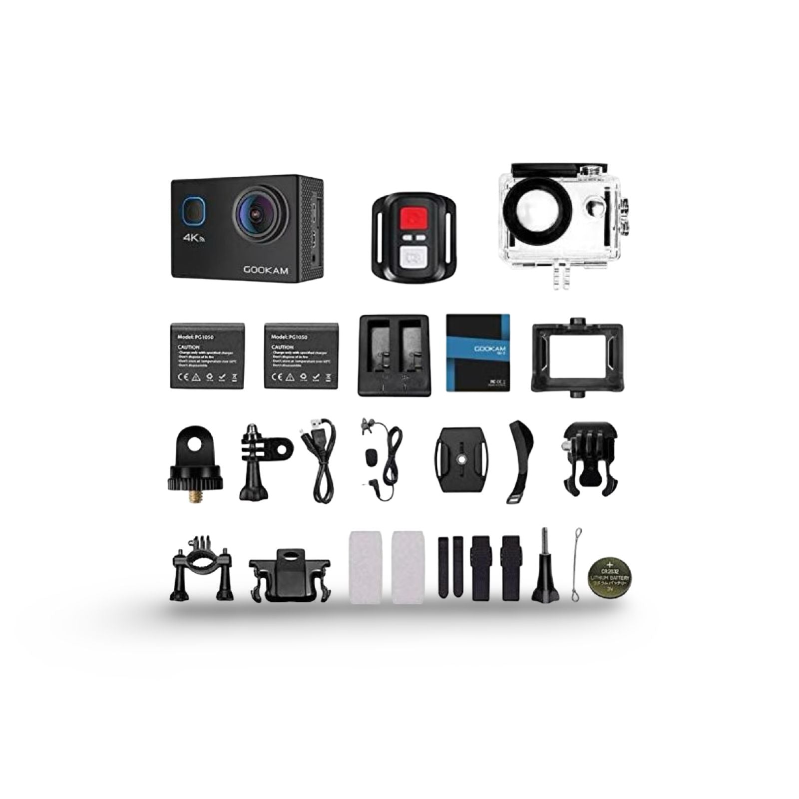 Diese Unterwasserkamera wird mit zwei Ladegeräten, einer Fernbedienung mit Handgelenkband, einem wasserdichten Gehäuse und vielen Zubehörteilen geliefert, sodass keine zusätzlichen Zubehörteile erforderlich sind, um Ihre Action Cam 4K an einem Helm, Fahrrad usw. zu befestigen. Ausgestattet mit zwei wiederaufladbaren 1050mAh-Batterien kann sie etwa 180 Minuten lang aufnehmen, was sie praktisch für Reisen, Wandern, Radfahren und andere Outdoor-Sportarten macht.