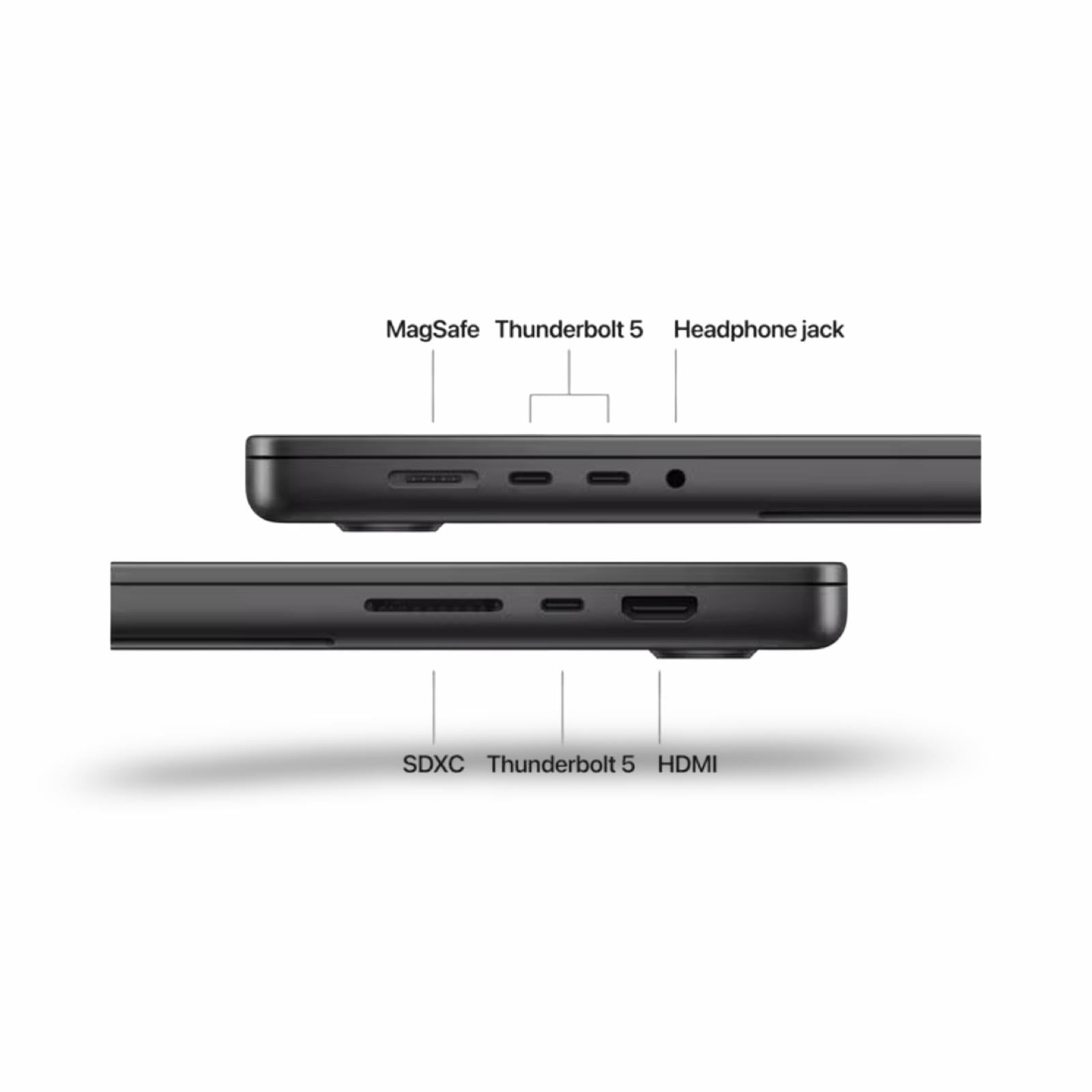 Das MacBook Pro 16" M4 Pro 2024 verfügt über eine Vielzahl von Anschlussmöglichkeiten, sodass Sie Ihre Geräte problemlos verbinden können. Mit mehreren Thunderbolt 4-Ports, einem HDMI-Anschluss und einem Kopfhöreranschluss ist es einfacher denn je, Ihre Hardware zu integrieren.
